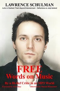 “Lawrence Schulman’s titanic knowledge of American popular music ranging across vaudeville, recording studios, Broadway musicals, cabarets and nightclubs, Hollywood soundstages, radio, television, and concert venues ripples through the forty-seven chapters of FREE: Words on Music by a Hi-Def Critic in an MP3 World, a deep dive into the recorded legacy of essential performers and songwriters. Featuring jam-packed portraits of the recorded legacies of a wide range of varied talents, Schulman’s impressive technical knowledge of recorded music history is simply stunning, as is his penetrating analysis on the importance of each individual included in this welcome compendium. For those addicted to American popular music, Schulman has much to teach in his celebration of the preserved legacies of the golden greats, as well as more obscure figures he handily convinces the reader deserving of more study.”